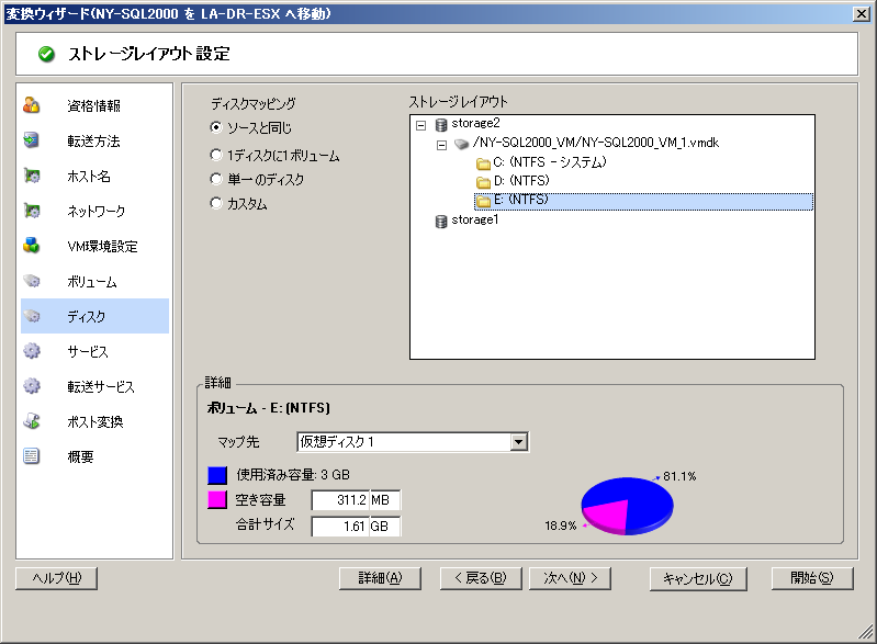 この[Migration Wizard (マイグレーションウィザード)]ページを使用して、ワークロード仮想化の操作中のディスクマッピングスキームを指定します。