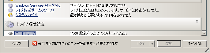 [マイグレーションジョブ]ウィンドウの[ドライブ環境設定]セクションでをクリックします。