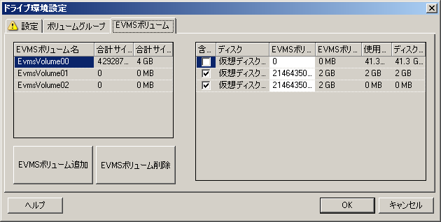EVMSボリュームを作成、削除し、EVMSボリュームレイアウトを管理する