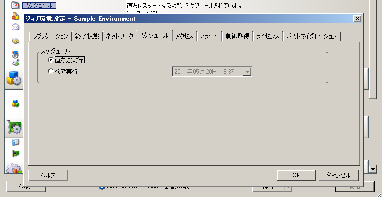 スケジューリングのオプションを使用すると、マイグレーションジョブが直ちに実行されるか、特定の日時に実行されるかを指定できます。ジョブの保存および実行に関してPlateSpin Migrateが提供するその他のオプションについては、ジョブの設定、実行、および管理を参照してください。