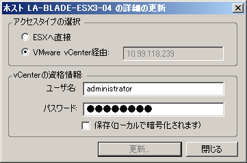 vCenter Serverを通してESXホストを検出した場合、これらのVMホストとの以降すべての通信は、vCenter Serverを通して行われます。