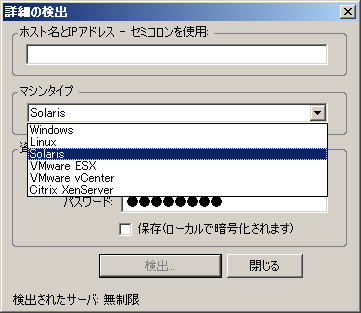 個別の物理または仮想マシン、複数のマシン、個別の仮想マシンサーバ、または複数の仮想マシンサーバを検出できます。VMware vCenter Serverと提携するすべてのVMware ESXホスト