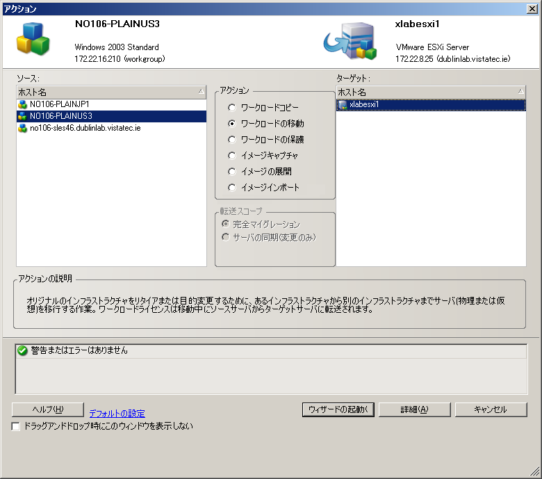 ターゲット上のオペレーティングシステムのプロファイルがソースワークロードのプロファイルと一致する