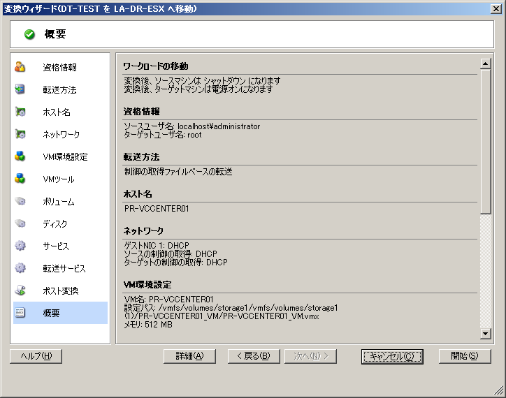 ソースおよびターゲットのワークロードの起動状態を自動化するには、変換ジョブで必要な変換後の状態を指定してください。転送オプションの指定を参照してください。