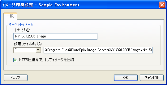 イメージ環境設定: イメージ名、イメージを保存する場所へのパス、NTFS圧縮の使用の有無を指定します([イメージ環境設定]で、をクリックします)。