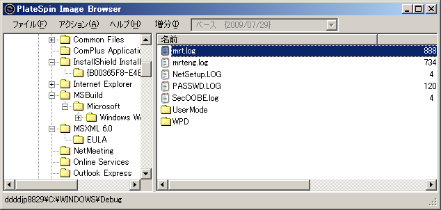 これを行うには、PlateSpin® ImageBrowserユーティリティを使用します。このツールを使用すると、次のものからファイルを参照、検索、ソート、および抽出できます。