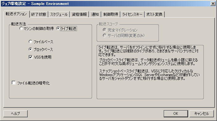 ソースからターゲットに転送されるワークロードデータの範囲(および)。サーバ同期ジョブにのみ適用可能です。サーバ同期を持つワークロードの同期を参照してください。
