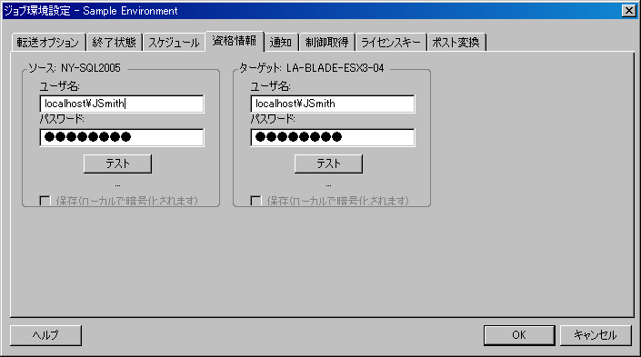 変換ジョブが適切に実行されるためには、ソースおよびターゲットの有効な資格情報を提供する必要があります。