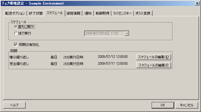 変換ジョブの重要な要素は、スケジュールです。スケジュールオプションでは、次の内容を指定できます。