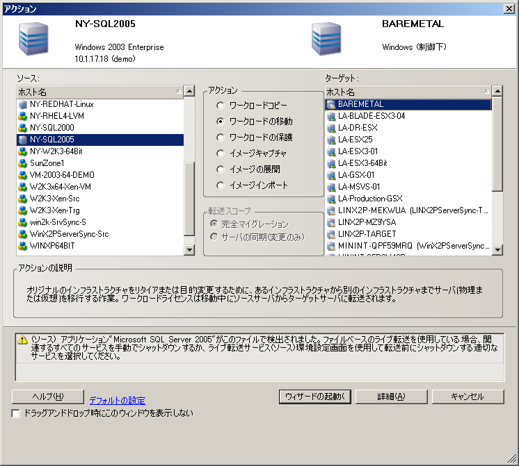 ソースワークロードを検出します。ソースワークロードおよびマイグレーションターゲットの検出を参照してください。