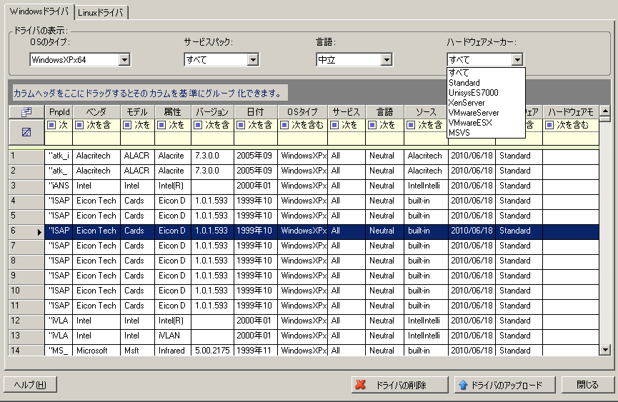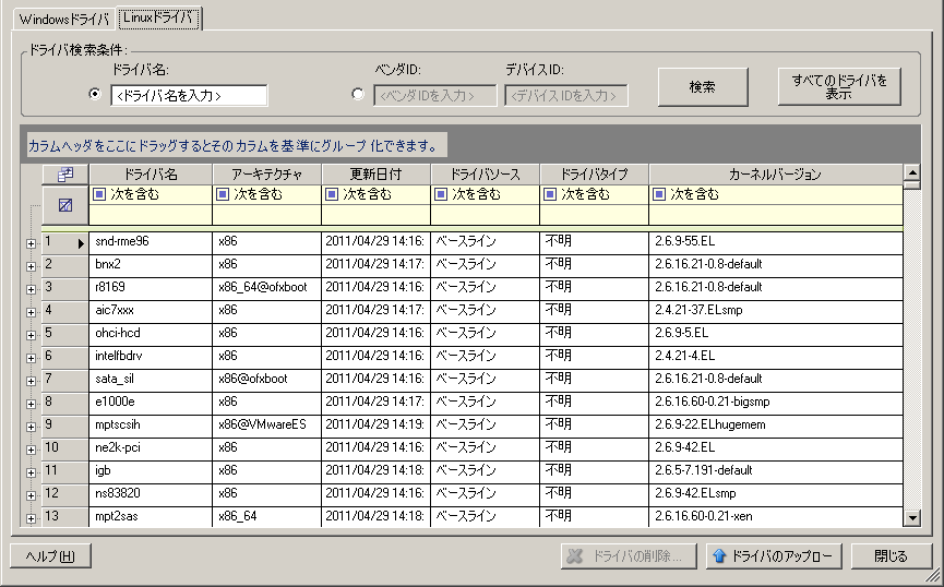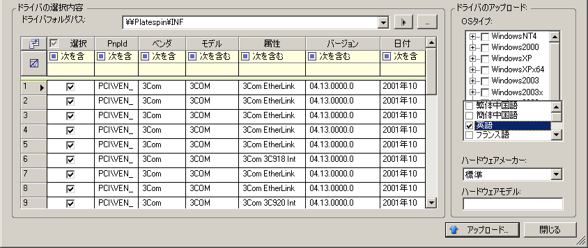 PlateSpin Driver Managerを使用して、デバイスドライバをドライバデータベースにアップロードします。