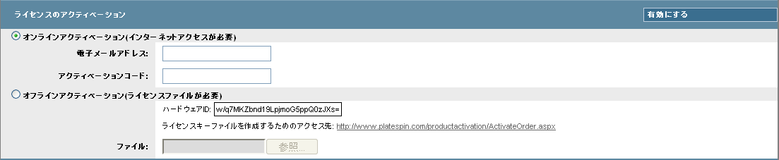 この項では、PlateSpin Protectソフトウェアの有効化について説明します。