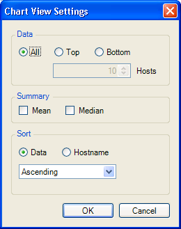 []領域では、データの量またはアルファベット順のホスト名に基づいて、チャートを昇順または降順のどちらでソートするかを指定します。