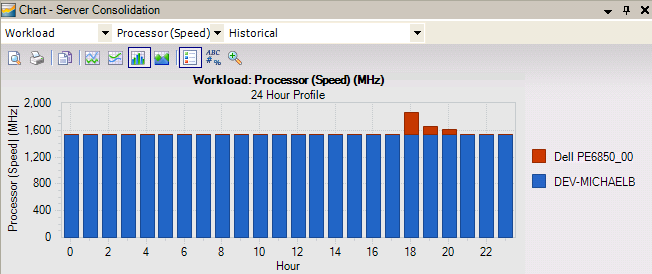 「ワークロード割り当て」レポートと24時間プロファイルチャートを表示するには、でターゲットサーバをダブルクリックします。
