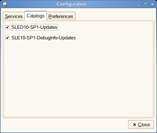 現時点では、SUSE Linuxサービス(YUMとZYPP)は、別のカタログは提供していません。各サービスとも1つのカタログしかありません。インストール時、またはsuse_registerでSoftware Updaterを設定した場合は、自動的にYUMおよびZYPPカタログに登録されます。 手作業でサービスを追加した場合は、カタログを自分で登録する必要があります。