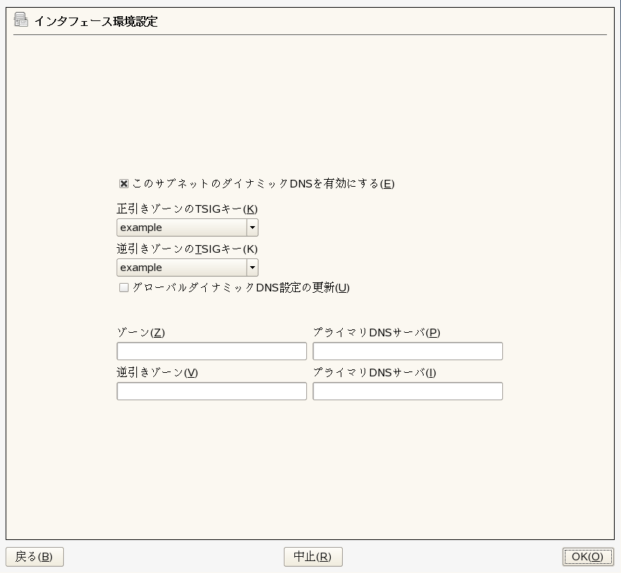 図 22-10 DHCPサーバ:ダイナミックDNS用のインタフェースの設定