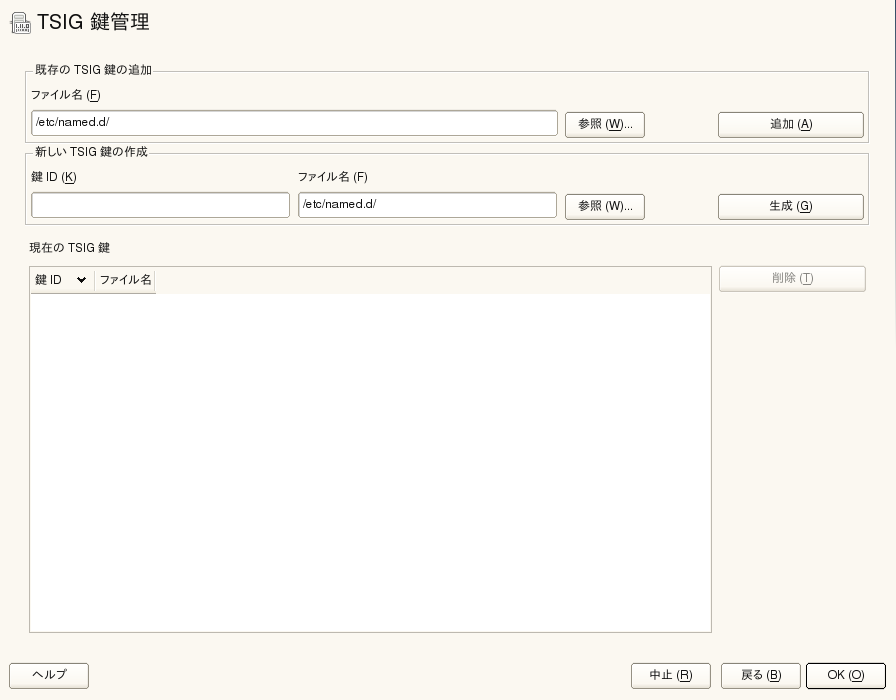前のダイアログでダイナミックDNSを設定するように選択した場合は、セキュアゾーン転送用のキー管理を設定できます。[]を選択すると別のダイアログが表示され、ダイナミックDNSのインタフェースを設定できます(図 22-10を参照)。