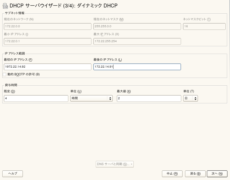 YaSTのDHCPモジュールを使用すると、ローカルネットワーク用に独自のDHCPサーバをセットアップできます。このモジュールは、[簡易モード]または[エキスパートモード]で実行できます。