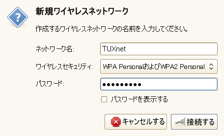お使いのワイヤレスカードでアクセスポイントモードがサポートされている場合、NetworkManagerを使用して設定できます。