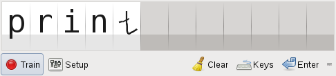 通常のモードでは、CellWriterウィンドウにジェスチャを入力するための空のセルがいくつか表示されます。ボタンをクリックするまで文字は別のアプリケーションには送信されません。文字を入力として使用する前に修正したり削除できます。認識の確実度が低い文字はハイライト表示されます。入力を修正するには、セルを右クリックすると表示されるコンテキストメニューを使用します。文字を削除するには、ペンの消しゴムを使用するか、マウスで中央をクリックしてセルをクリアします。CellWriterで入力が終了したら、アプリケーションのウィンドウをクリックして入力の送信先となるアプリケーションを定義します。をクリックしてアプリケーションに入力を送信します。