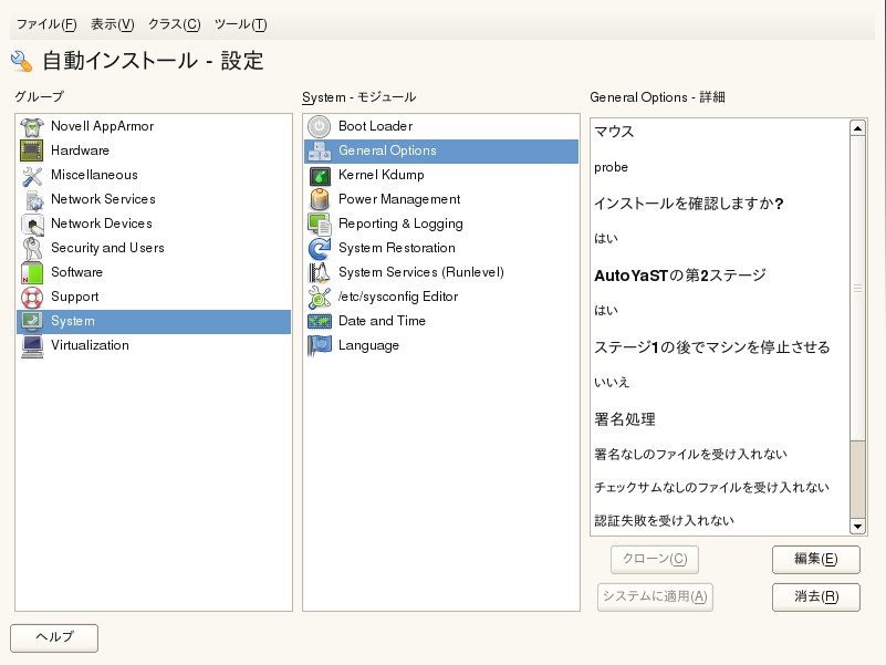 AutoYaST GUIを使って、要件に合うようにプロファイルを作成および変更する