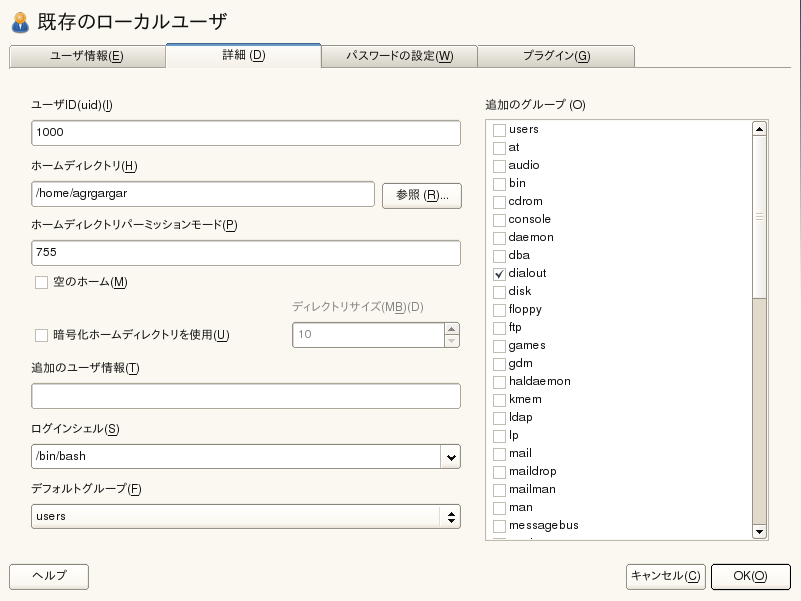 YaSTでは、新しいユーザまたは既存のユーザに対する暗号化ホームディレクトリを作成できます。既存のユーザ用の暗号化ホームディレクトリを作成、または変更するには、ユーザの現在のログインパスワードを把握しておく必要があります。.デフォルトでは、既存のすべてのユーザデータが暗号化された新規ホームディレクトリにコピーされますが、暗号化されていないディレクトリからは削除されません。