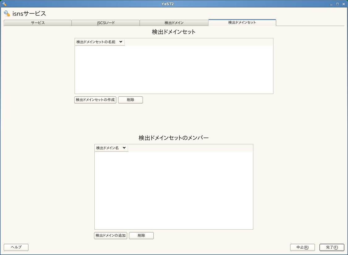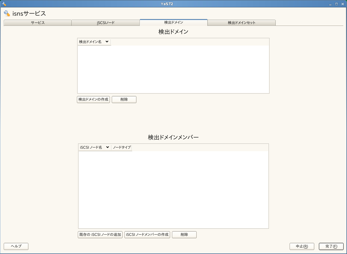 重要: iSNS検出ドメインを設定するには、iSNSサービスがインストール済みで、実行されている必要があります。詳細については、セクション 12.4, iSNSの起動を参照してください。