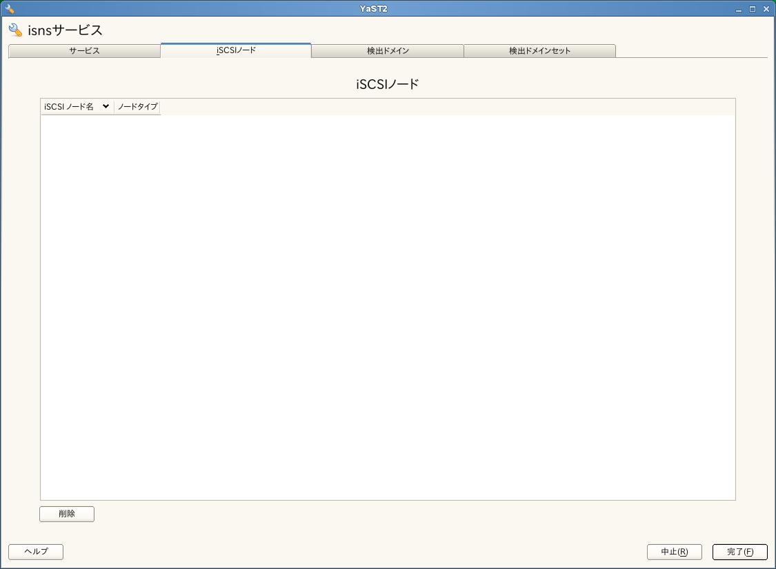 iSCSIノードを選択して[]ボタンをクリックして、そのノードをiSNSデータベースから削除できます。iSCSIノードをもう使用しない場合や名前を変更した場合に有効です。