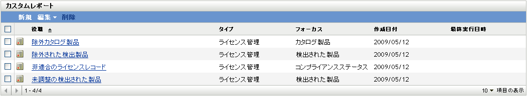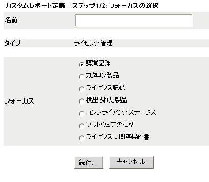 [ライセンス管理のカスタムレポート]パネルで、次のいずれか1つをクリックします。