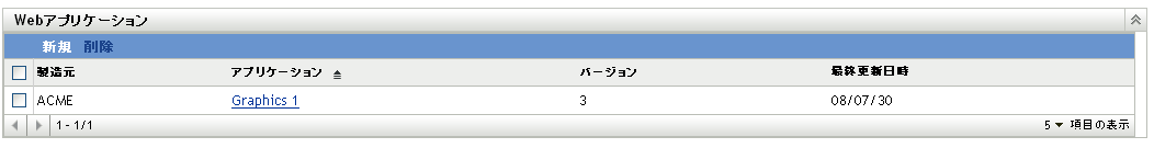 3. [Webアプリケーション]パネルで、編集するアプリケーションの名前をクリックします。
