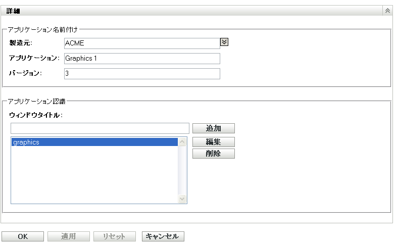 このページを使用して、アプリケーションのウィンドウのタイトルバーのテキストを指定できます。
