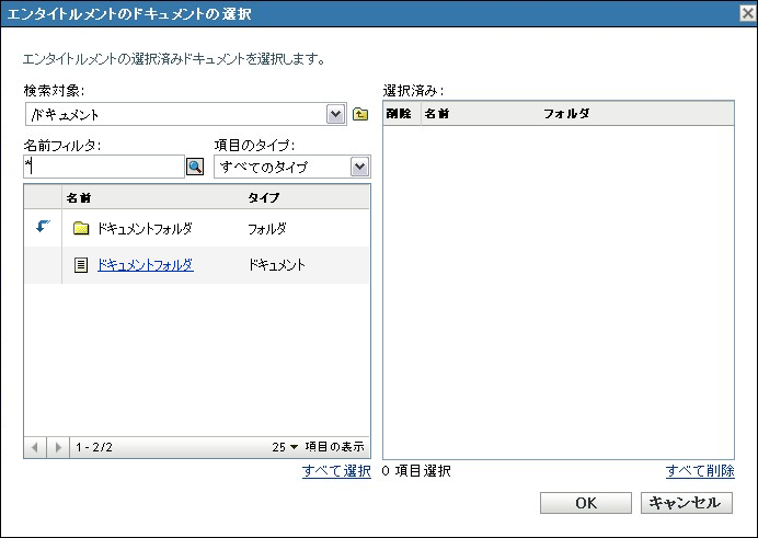 [エンタイトルメントのドキュメントの選択]ダイアログボックスでドキュメントを指定し、[]をクリックします。