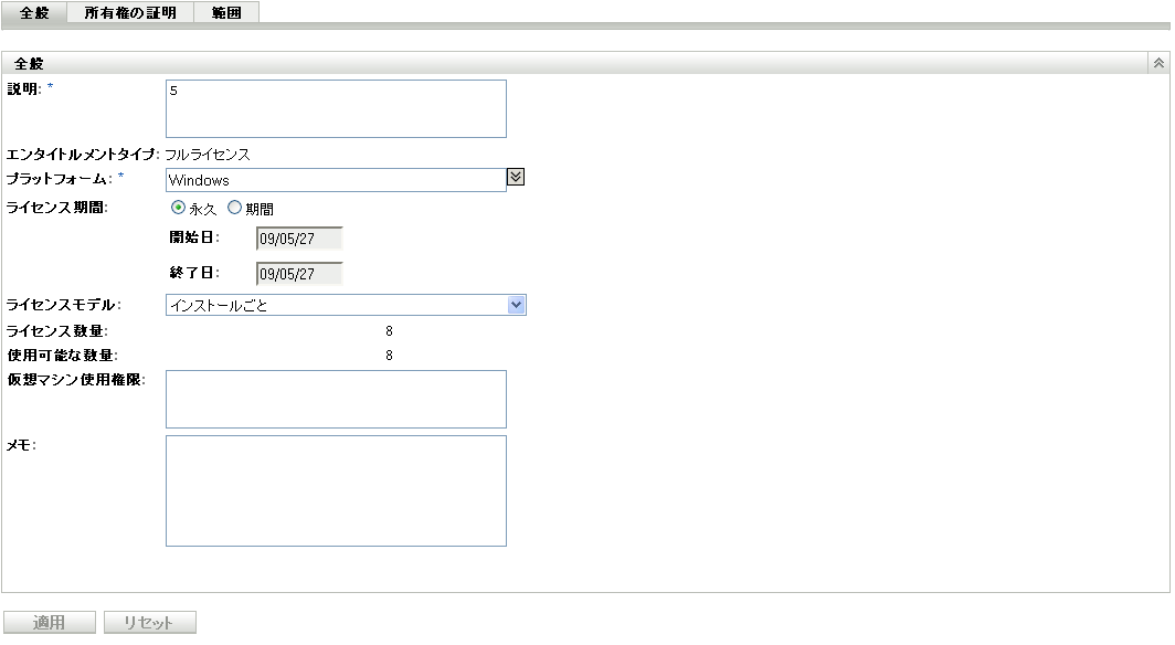 ライセンスエンタイトルメントでカバーされる製品を選択します。