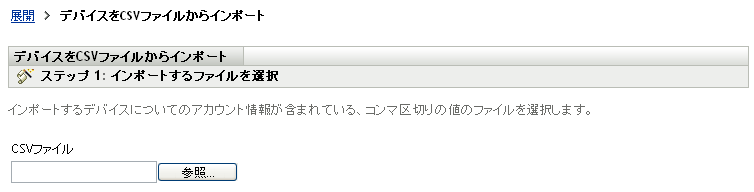 左ナビゲーションパネルの[]リストで、[]をクリックして、デバイスをCSVファイルからインポートウィザードを起動します。