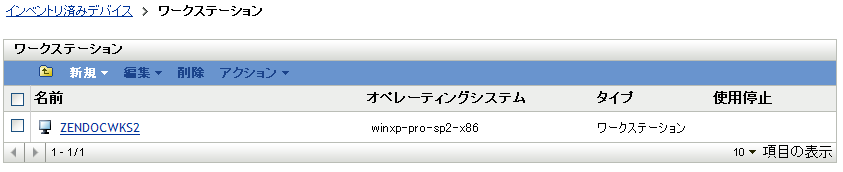 []または[]フォルダの横にある下線付きのリンクをクリックすると、ご使用のZENworksシステムに含まれるサーバまたはワークステーションのリストが表示されます。