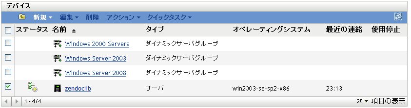 図 13-1 [デバイス]パネルには、サーバのリストが表示されます。