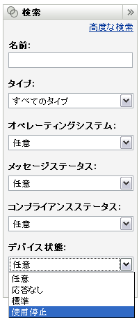 ZENworksシステム内のすべてのリタイアしたデバイスを検索できます。