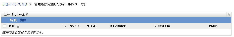 [ユーザフィールド]パネルには、既存の定義済みフィールドと次の情報が表示されます。
