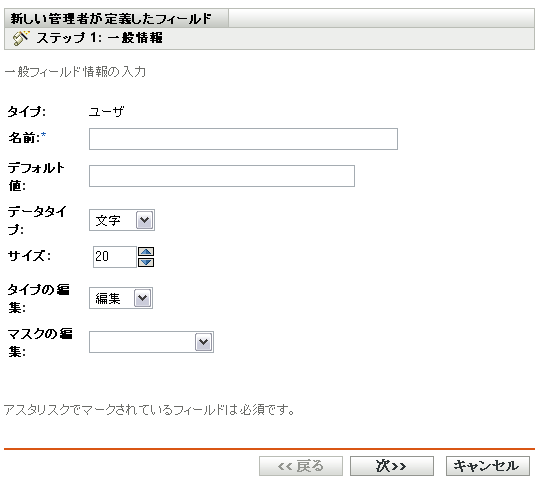 名前: 管理者が定義したフィールドの名前です。このフィールドは必須です。