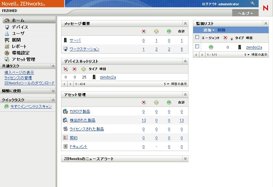ZENworksコントロールセンターで、[]タブをクリックします。