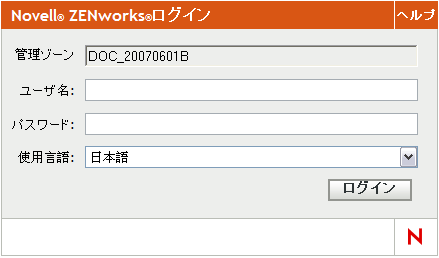 ZENworks_Server_Addressは、ZENworksサーバのIPアドレスまたはDNS名に置き換えてください。デフォルトポート(80または443)を使用していない場合は、portの指定が必要です。ZENworksコントロールセンターにはHTTPS接続が必要です。HTTP要求は、HTTPSにリダイレクトされます。