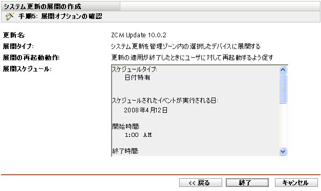 これでよい場合は、[]をクリックして更新の展開を開始します。これでよくない場合は、[]をクリックして変更します。