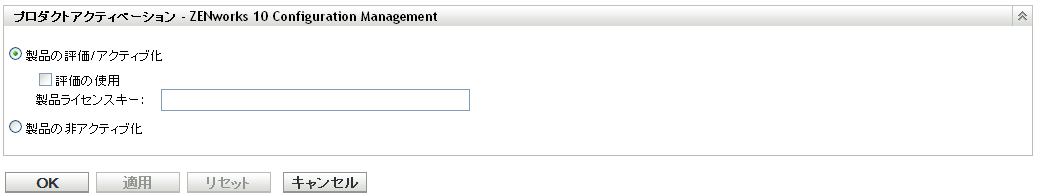 [製品の起動]パネルで、[製品の評価/アクティブ化]オプションを選択します。