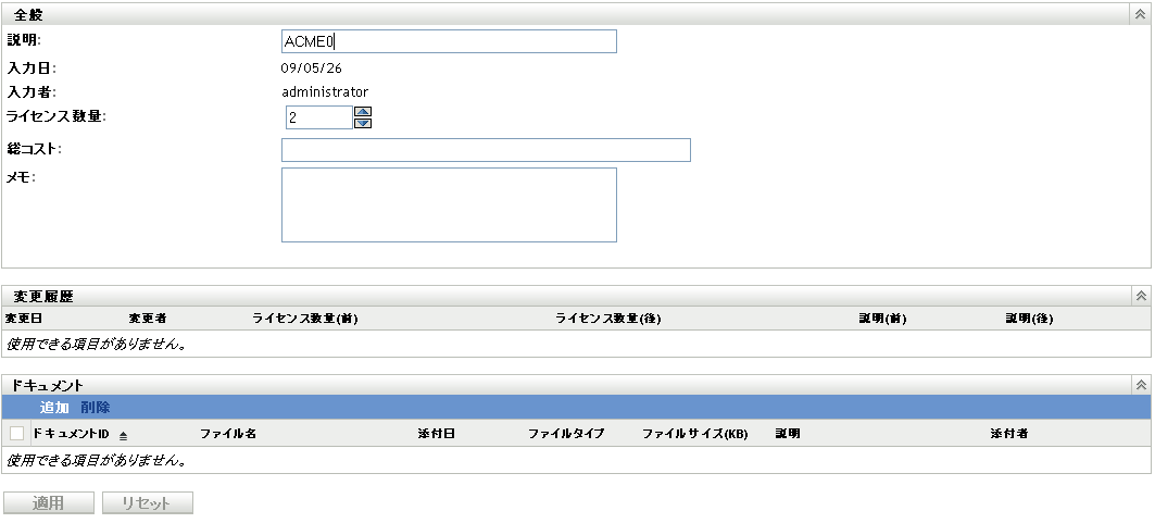 購入概要レコードには、計算に使用するライセンス数を手動で入力できます。