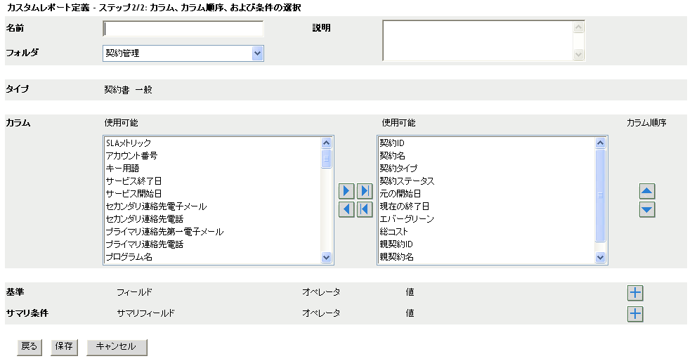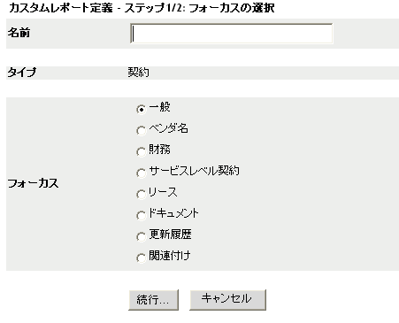 [契約管理のカスタムレポート]パネルで、次のいずれか1つをクリックします。