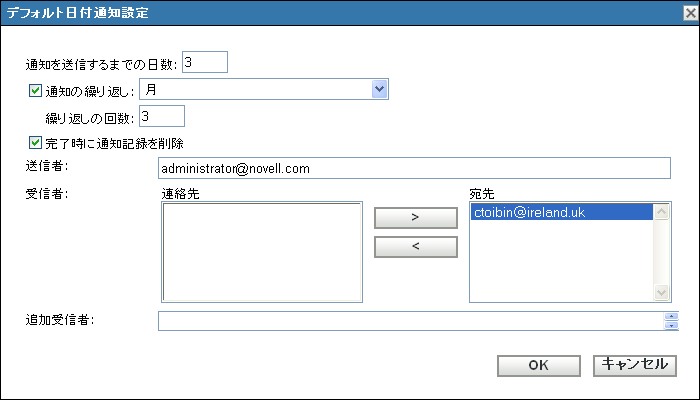 [デフォルト日付通知設定]ダイアログボックスのフィールドに入力します。