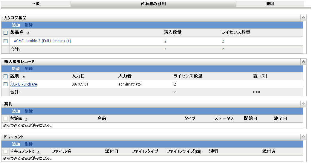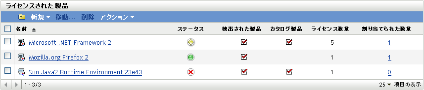 3. [ライセンス管理]パネルで、[ライセンスされた製品]をクリックします。