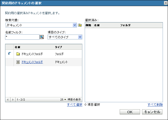 ダイアログボックスでドキュメントを選択し、[]をクリックします。