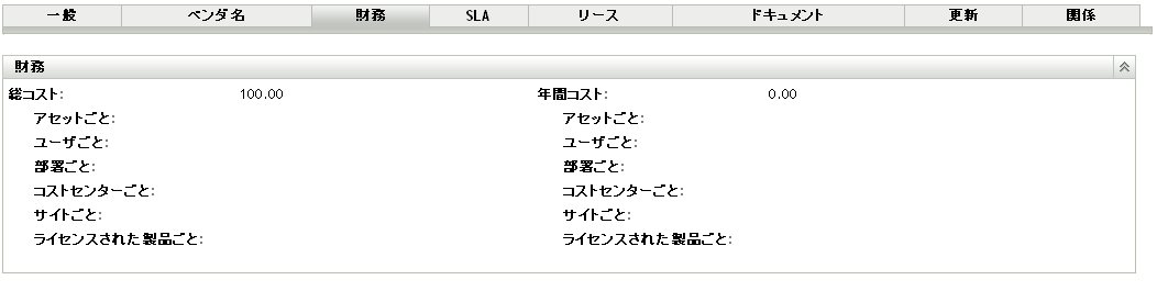 []タブには、契約に関連するコストが表示されます。この情報は、契約のデータから計算されます。