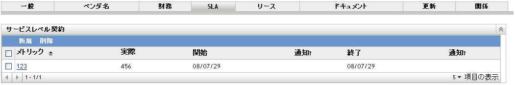 []タブでは、サービスレベル契約を作成および削除できます。